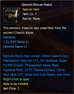 Les Trésors de la Reine Démoniaque ont été découverts par une équipe de fouilles dans l'Abysse du Chaos. Ils sont désormais à nouveau disponibles dans l'Échoppe pour une durée limitée. Ces packs contiennent de nombreux objets variés et peuvent même renfermer l'âme d'une Reine Démoniaque. Déchaînez le pouvoir des enfers et découvrez les pouvoirs qu'ils renferment !