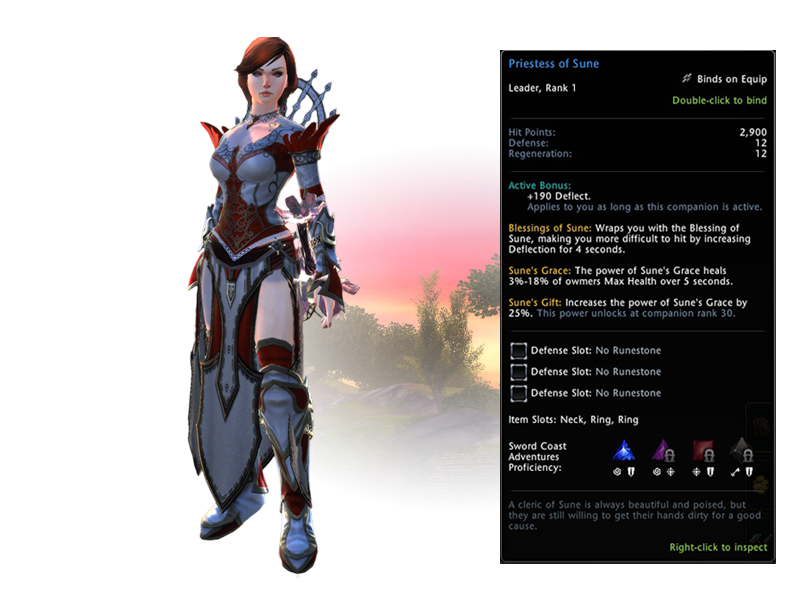 The Priestess of Sune will always have your back in combat. Her Deflection buff will make you much harder to be hit and should the enemy get through to you anyway, she will heal your wounds for a good amount of Health.